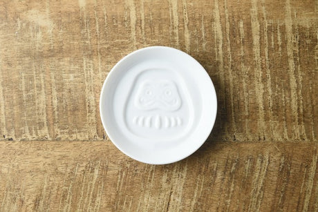 Daruma Kageasobi Embossed White Porcelain Soy Sauce Dish - 3"