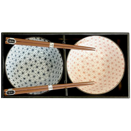 Hemp Leaves Donburi Ramen Bowl Gift Set with Chopsticks – Set of 2