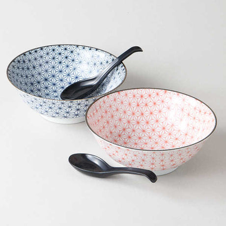 Hemp Leaves Donburi Ramen Bowl Gift Set with Spoons – Set of 2