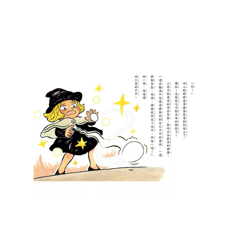 故事中的魔女實習生小菊因為遇到不同的事件,而心情也有不同的變化,從被老師派遣去買魔藥材料,到成功使出了魔法,就像一個「心情溫度計」。成長中的孩子亦是,周遭充斥著的聲音和信息,都會影響他們的感受,甚至動搖他們的想法,而這是孩子建立自我認同、形成價值判斷的必經之路,對此我們可以給予鼓勵與支持,並從中引導孩子了解透過付出,能體驗到幫助他人和關心他人的喜悅,有助於建立孩子的自尊心和自信心,培養出積極心態。