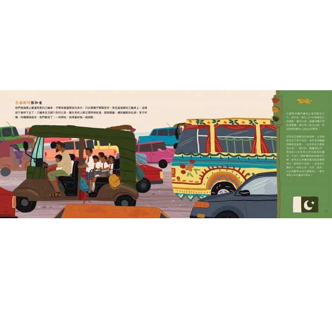 在巴基斯坦,許多孩子乘著三輪車上學;