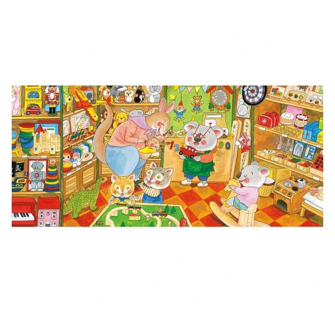 早上8點麵包店開始營業,熱騰騰的麵包剛出爐,一起來做早操吧!擬人化的商品角色做著各種運動,他們也藏在店面中,你找到了嗎?為了讓這本書更好玩,作者在翻頁間也藏了小祕密,比如馬先生買的花要送給誰?和服店為什麼今日公休?書中還藏有時鐘、橡實和信封的祕密,等你來找找看!