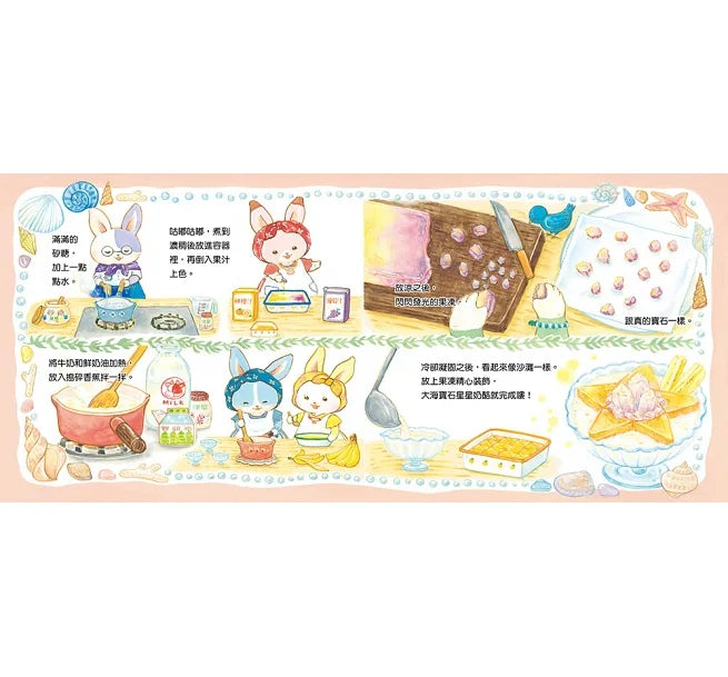 「不管什麼美味都難不倒我們,交給五隻小兔子準沒錯!」這句貫穿全書的口號,喊出小兔子對料理的熱情,他們到處去旅行,為客人做美味的料理,讓客人露出開心的笑容,就是他們最大的快樂。「小兔子冰菓鋪」就是這樣一臺載滿溫馨和人情味的行動餐車,除了帶領親子一起感受夏季海灘的魅力、大海所給予的寶藏,還能依照書中的食譜,親子一起動手做,體驗小兔子冰菓鋪的可愛情境,打造親子共廚美好「食」光,更讓食物教育落實生活之中,感受食節料理鼓舞人心的溫柔力道,也讓療癒度百分百的「食」癒力,為孩子的情感教育增溫。