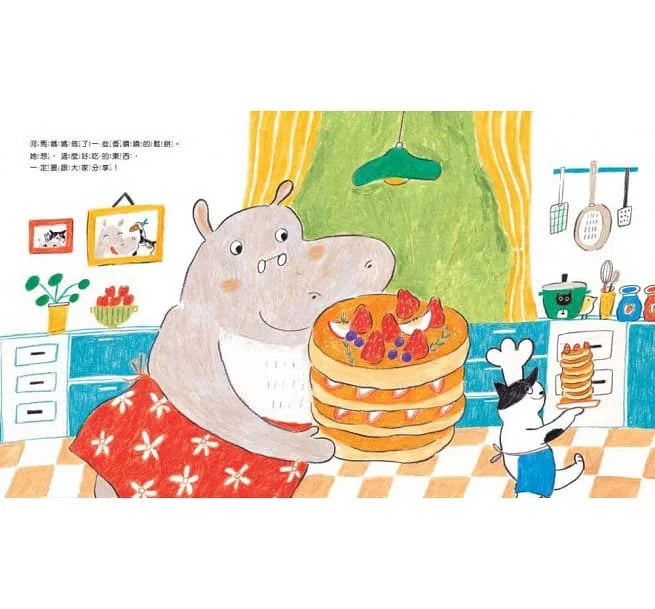 河馬媽媽做了香噴噴的鬆餅,想與森林裡的動物們分享。
