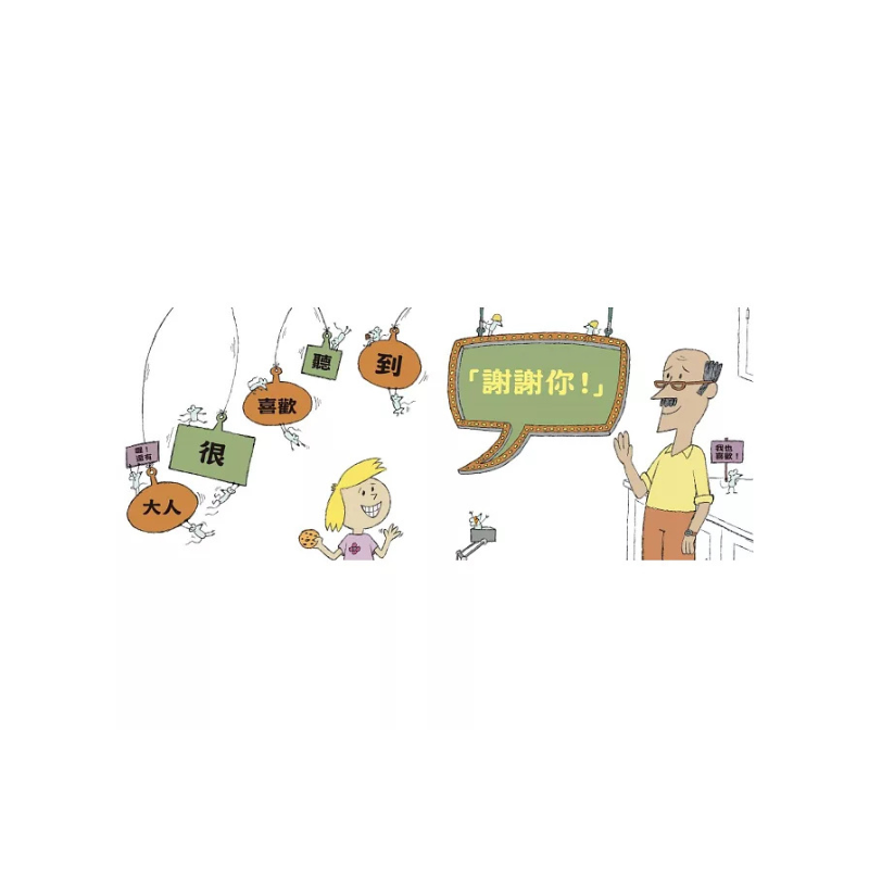 當孩子學會說話後,卻常因生活經驗不足,而無法拿捏講話的時機或內容。透過書中的情節,讓孩子學習正確的表達「請、謝謝、對不起」,一起體驗不同的場合如何表現正確的言行舉止,培養孩子成為一個有禮貌、受歡迎的人,進而體認有禮貌是令自己和別人都開心的一件事。