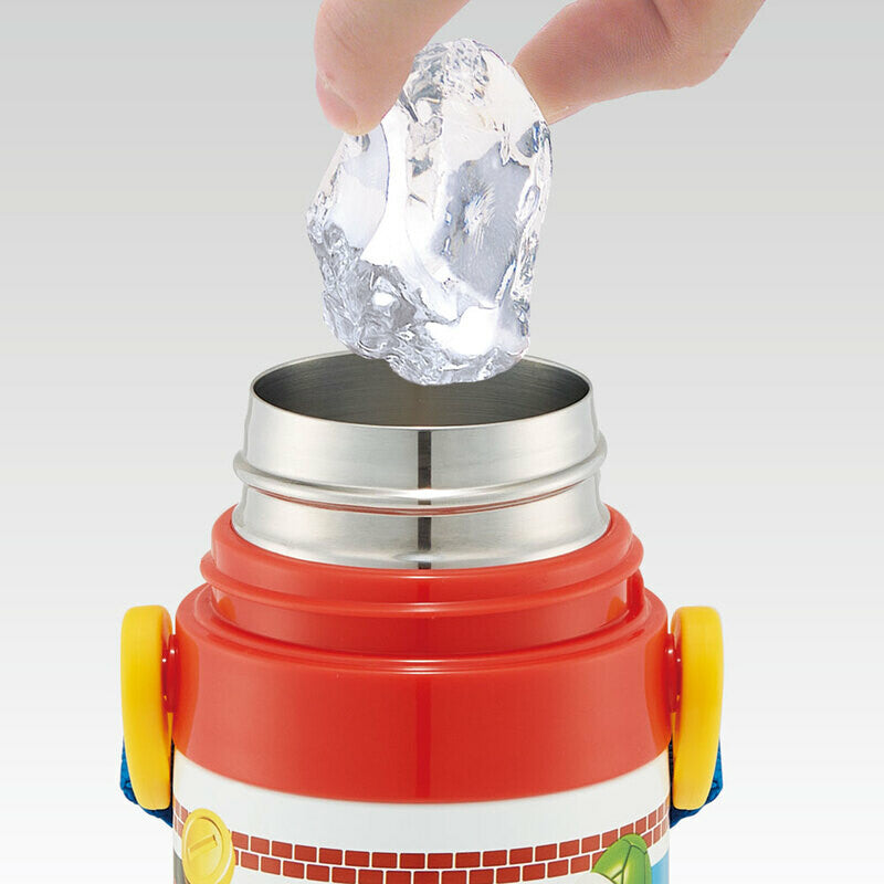 SKATER Stainless Steel Flask Water Bottle with Shoulder Strap - Super Mario (470mL)