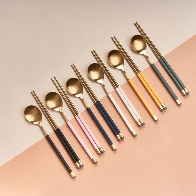 Kara Gold Spoon & Chopsticks Set - Black is backordered and will ship as soon as it is back in stock.
