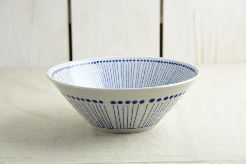 A versatile Japanese Mino ware donburi ramen bowl with a clean blue pattern for everyday dining.