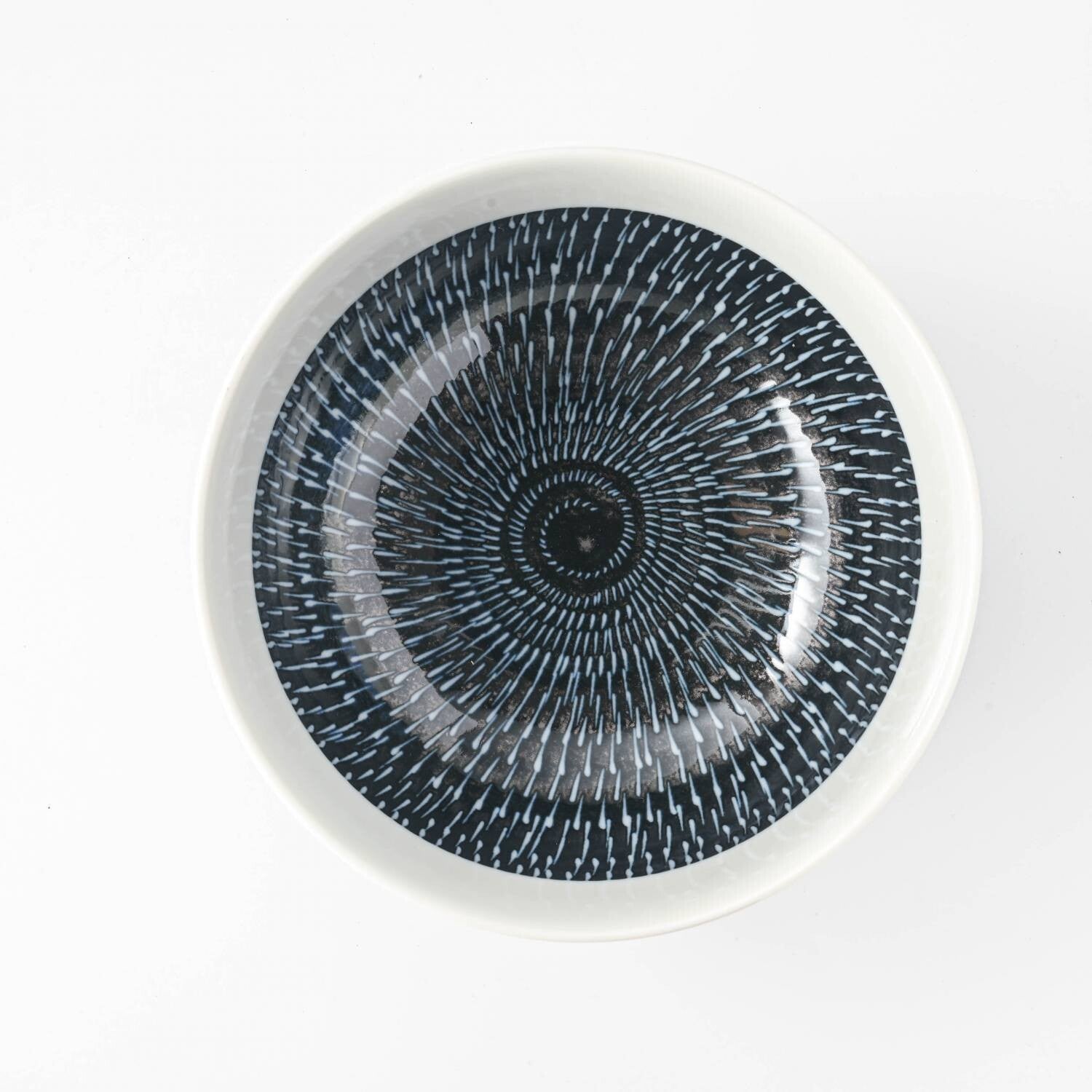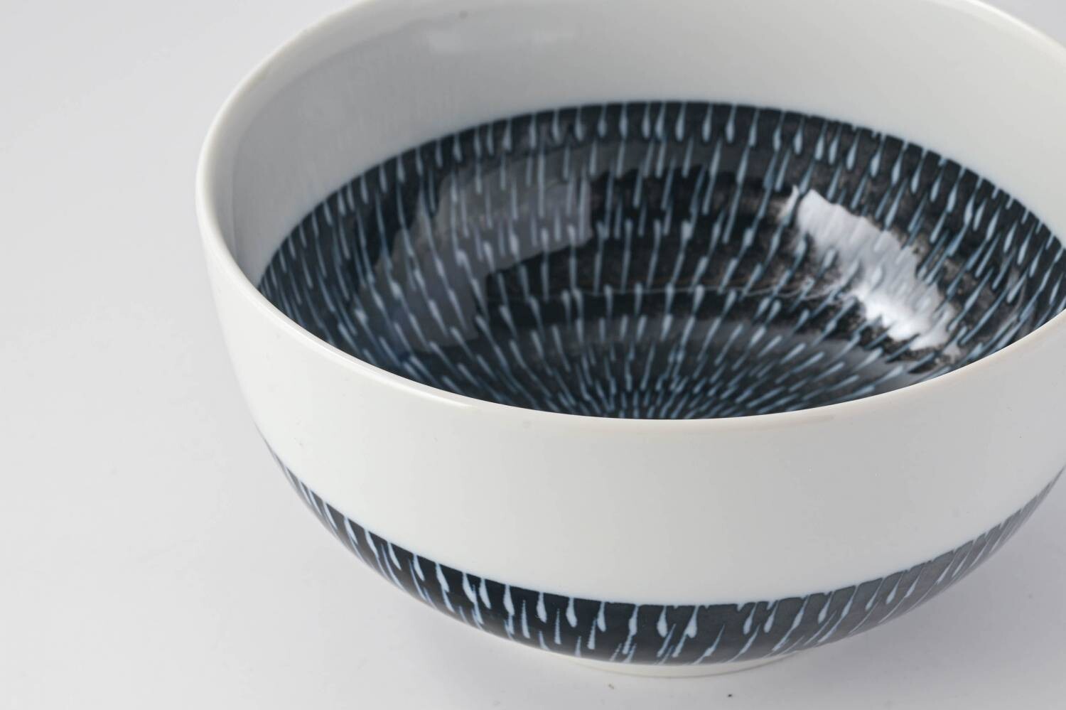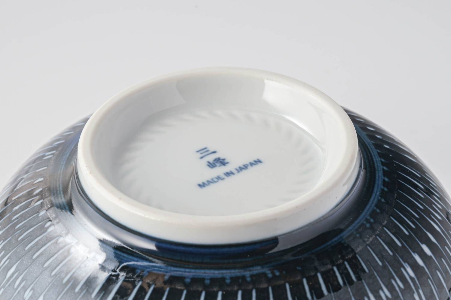 Features the traditional Tobikanna pattern, a classic decorative technique unique to Japanese ceramics. The rhythmic carved texture, created while the clay is still turning, gives the surface a lively sense of movement. Finished in a deep indigo glaze, the bowl has a fresh yet timeless look that pairs naturally with Japanese-style meals.