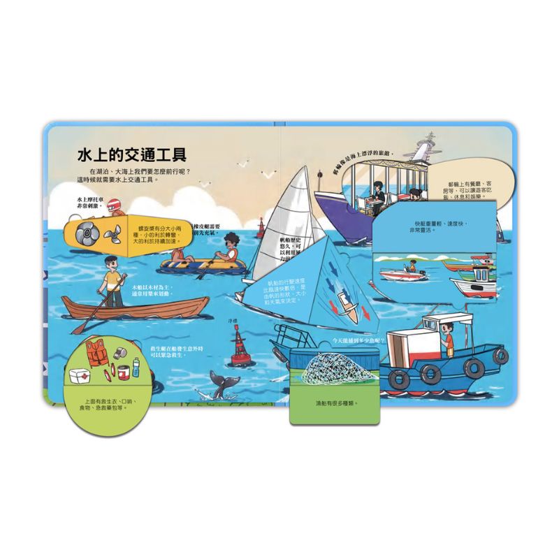 《百問百答圖解翻翻書:揭祕交通》以孩子最感興趣的「提問+翻翻頁」方式,帶領孩子認識生活中常見又重要的交通工具。