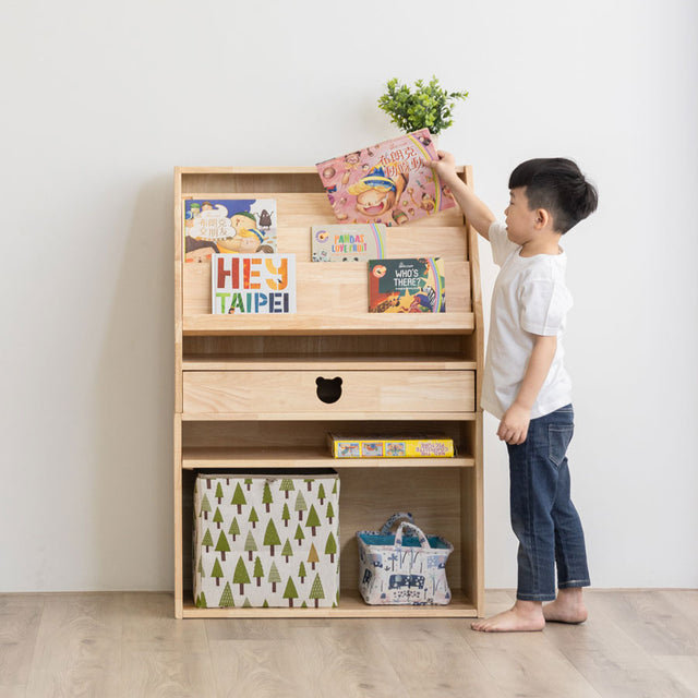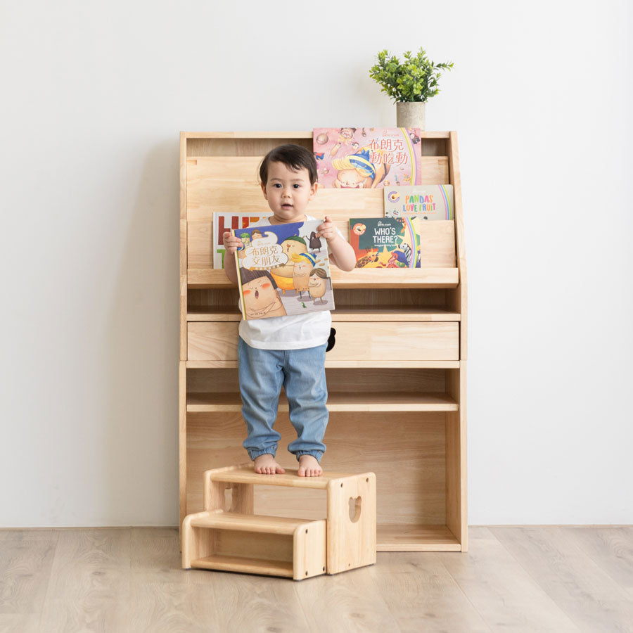 Create a good reading habit for young readers by giving them convenience to pick their own books, and organizing with an ease too. This bookshelf grows with your kids with its quality and flexible 2-way design. It comes with a display bookshelves unit and a store-anything shelves unit. The 2 units can be placed separately (easier for young toddlers to reach) or stacked together as an complete book and storage system (for 3+).