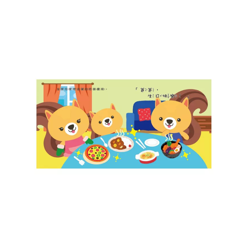 搭配遊戲互動、歡快兒歌、歡呼聲、情境句、祝福錄音、生日繪本,