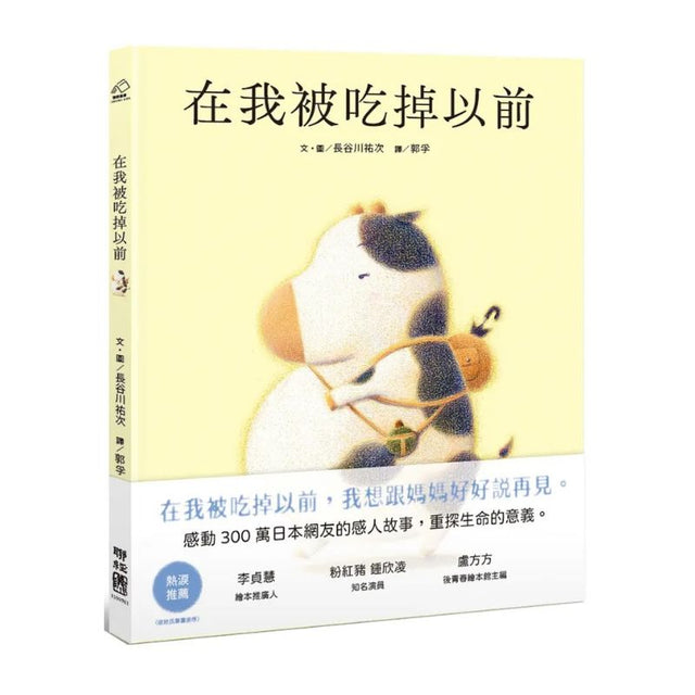 《在我被吃掉以前》是以小牛內心獨白為起點的故事,全書以色鉛筆繪製,圓圓胖胖的小牛、溫柔的筆觸與氛圍,卻帶出一個令人震撼的懸念——要被吃掉的小牛,會迎來什麼樣的結局?