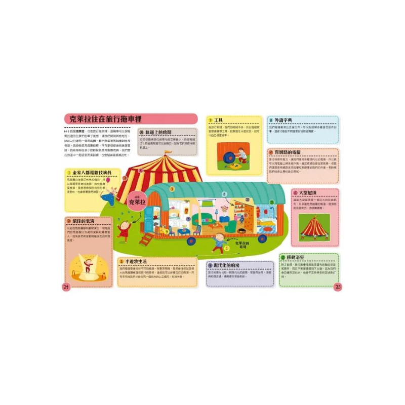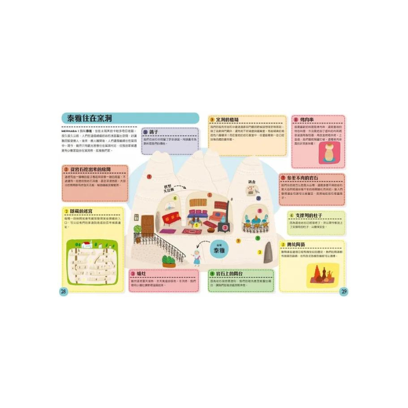 ★豐富情境呈現各國居住建築、屋內場景、家具、生活習慣等,充份表現異國生活文化臨場感,增加對異國文化的想像與理解。