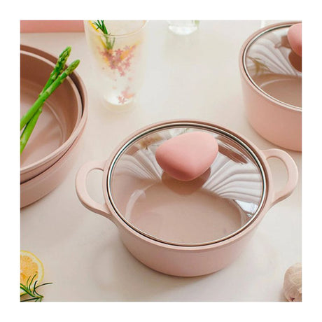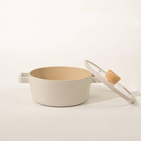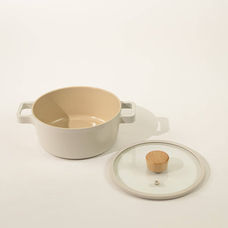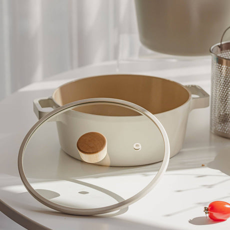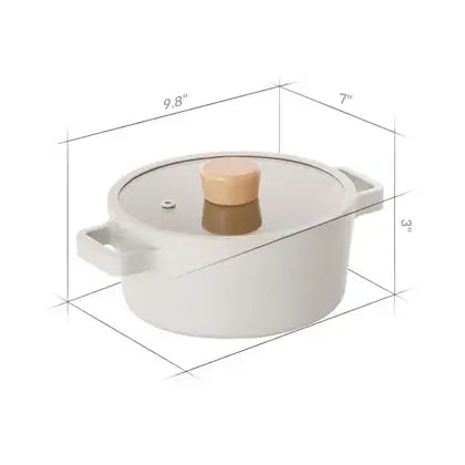 Retro Sherbet Ceramic Nonstick Low Stockpot with Glass Lid - 2QT