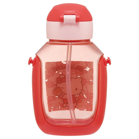 SKATER One-Push Straw Water Bottle with Carrier (530ml) - Hello Kitty (Red)