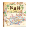 故事中,孩子和家人一起準備材料、揉麵、包餡、敲模、烘烤,