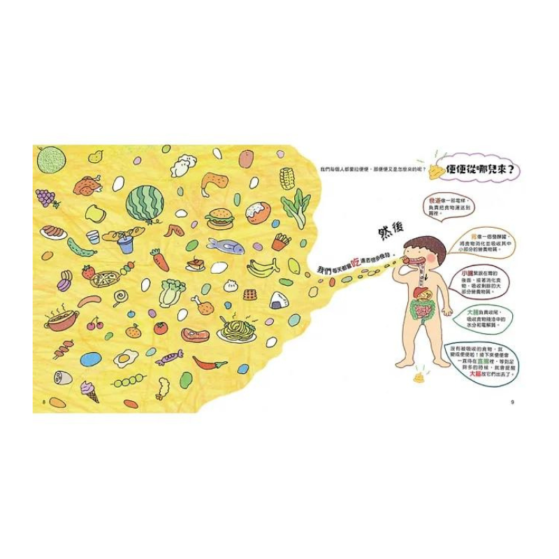 顏色鮮明豐富,畫風輕快可愛,幽默的情節想像力爆棚、逗趣的畫面表現力極強,全書以幽默風趣的方式向孩子分享健康知識,趣味十足地解答孩子的疑問,幫孩子釋放「屎尿屁」能量。