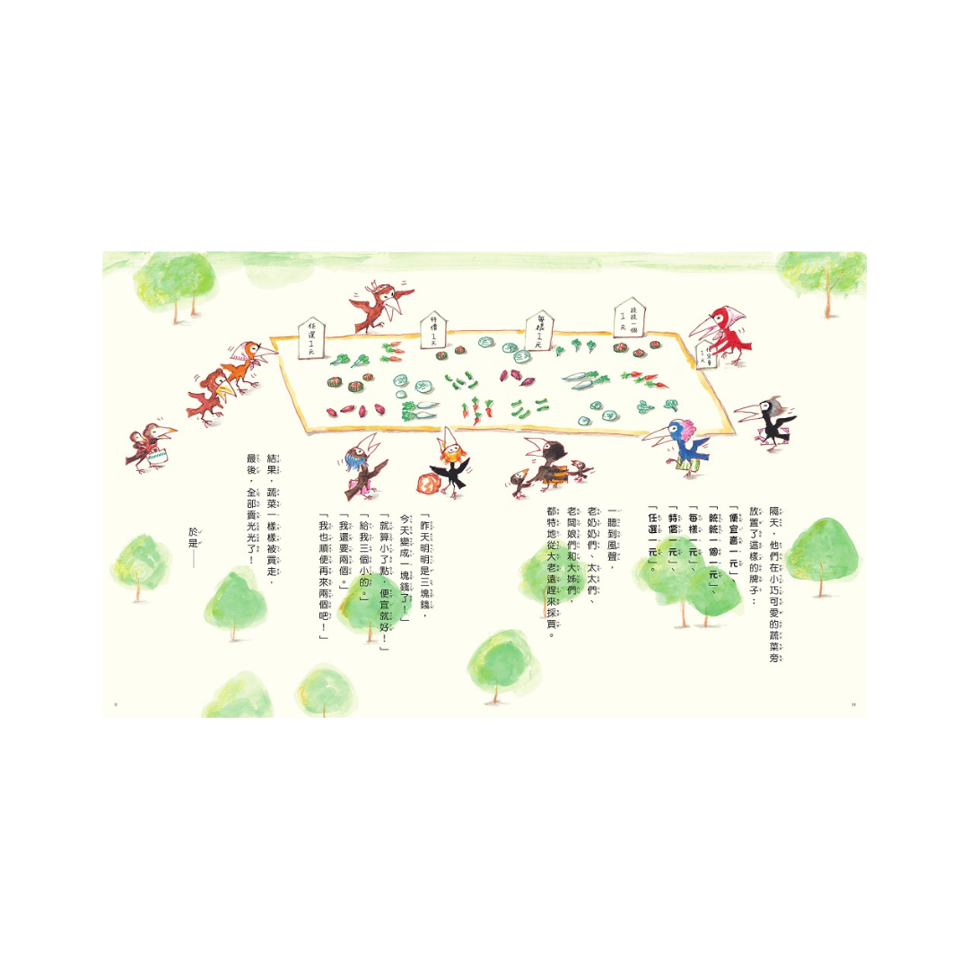 蘋果幫阿森和林姨賣蔬果的時候,周遭的狀況和情勢都會影響販賣的數量和價錢,因此買賣的過程中,必須時時考量顧客的期待和需求,並隨之不斷變通。這些不但是從事生意買賣的必備技能,也是孩子們進入快速變動的社會時,可以提前培養的溝通力和適應力。