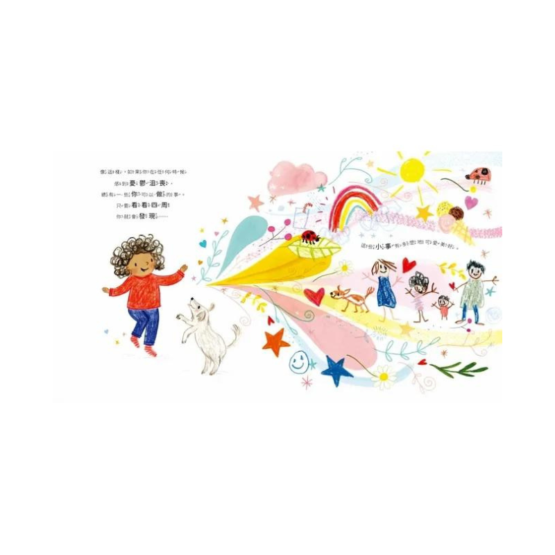 故事中的小女孩,在生活中尋找讓她快樂、微笑或驚喜的每一件「小事」。