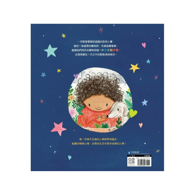這是一本散發著愛與溫暖的甜美小書,猶如一首感恩的讚美詩,洋溢溫馨喜樂,邀請我們將目光轉移到每一件小小的事上,去發現藏在一天之中的各種美好事物。優美的文字、精彩的插圖,構成生活中一幕幕動人的小確幸。只要靜心感受,每一件看似微不足道的小事都帶有魔法,能讓你轉換心情,沉浸當下的美好時光。