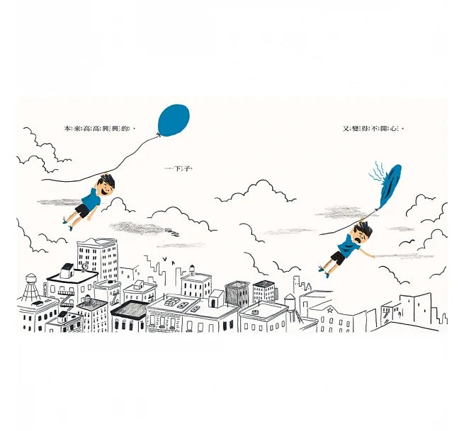 有時候,本來高高興興的,一下子又變得不開心,有時候,只想大哭一場,不知道怎麼辦才好。書中的小男孩經歷了一場情緒之旅,好心情就像乘著氣球飛翔,但壞心情就像是一場雨,情緒的風暴來了,怎麼辦?