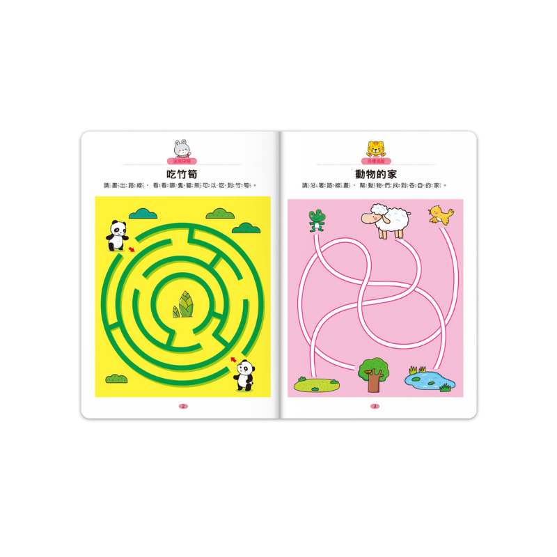 家長可在完成後在書末對答案,也可以陪伴孩子一起遊戲,適時引導孩子完成題目,並於完成後給予鼓勵或獎勵,幫助孩子建立自信心與成就感,共享親子歡樂時光!
