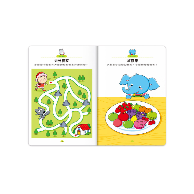 家長可在完成後在書末對答案,也可以陪伴孩子一起遊戲,適時引導孩子完成題目,並於完成後給予鼓勵或獎勵,幫助孩子建立自信心與成就感,共享親子歡樂時光!