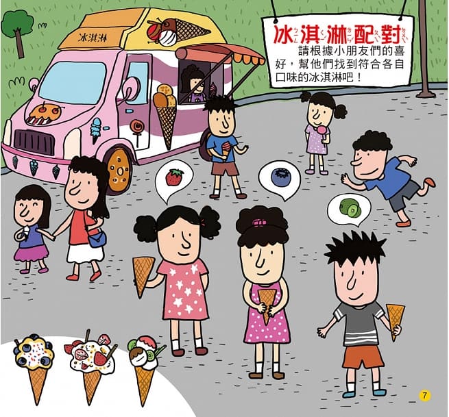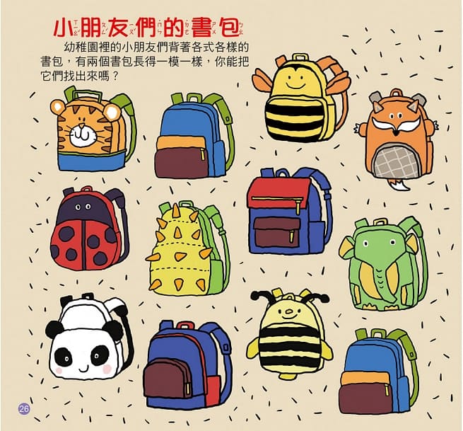 在找出和題目相符合的答案中,孩子們可以先記下相似物品中的細微差異,提升記憶力,從細節裡找出正確的線索。