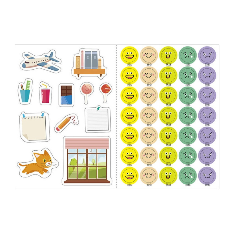 每冊均附100張貼紙,可重覆黏貼於本書內頁,讓孩子依據各單元情境,貼上相應的表情,練習辨識與表達自我情緒,貼紙遊戲讓學習更有趣、表達更活潑!