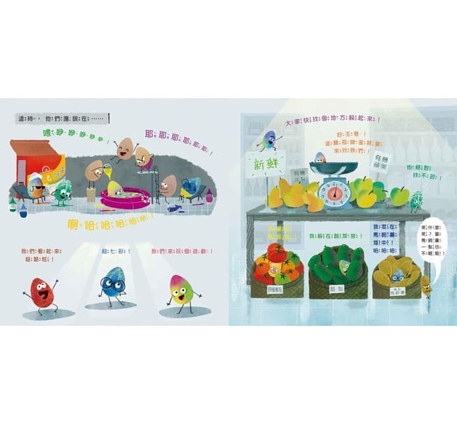 「小小孩能試著辨識書中的賣場貨品,例如:馬鈴薯、番茄及酪梨。如果還不認識,父母可以用這個機會幫孩子上一課。我真喜歡所有的蛋靠著線索與團隊合作,一起找回那顆失蹤的蛋!和朋友一起玩總是很棒,不是嗎?」── 亞馬遜讀者