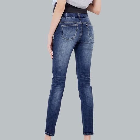 Maternity Slim Fit Stretch Jeans 刷破修身窄管牛仔孕婦褲