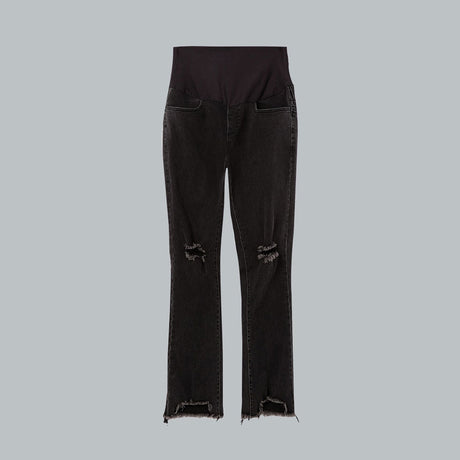Maternity Distressed Cropped Stretch Denim 刷破抽鬚牛仔孕婦褲 (黑)