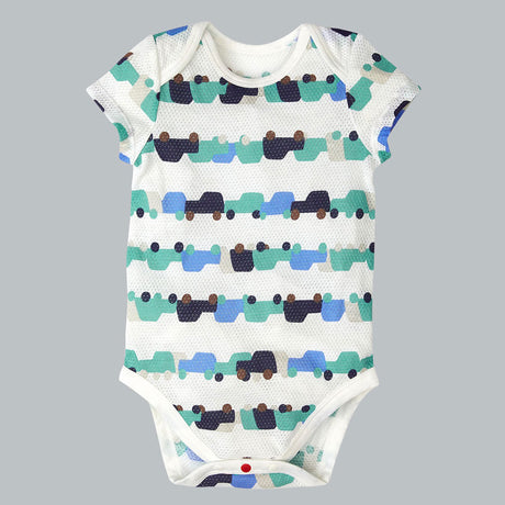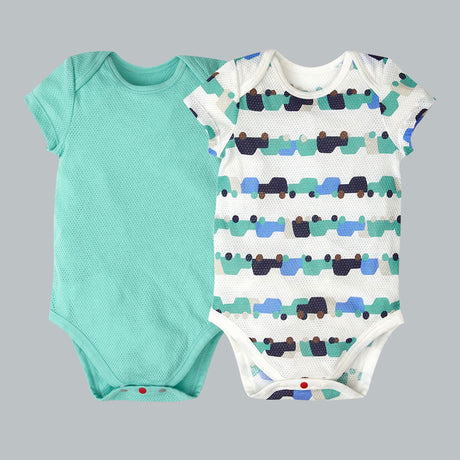 Cotton Mesh Short Sleeve Onesie 純棉網眼包屁衣(2入)-車車/綠