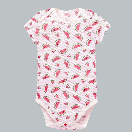 Cotton Mesh Short Sleeve Onesie 純棉網眼包屁衣(2入)-西瓜/粉
