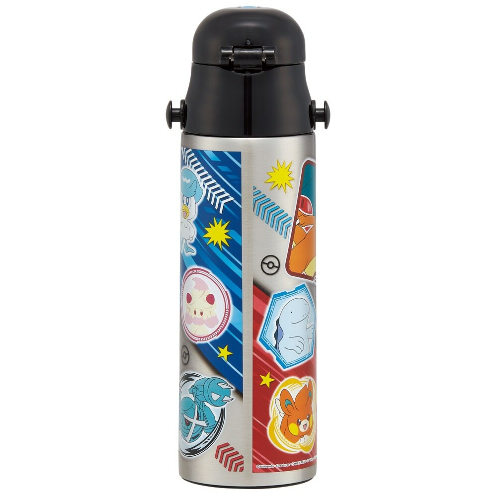SKATER Ultralight Stainless Steel Flask Water Bottle with Shoulder Strap - Pokemon (580ml)