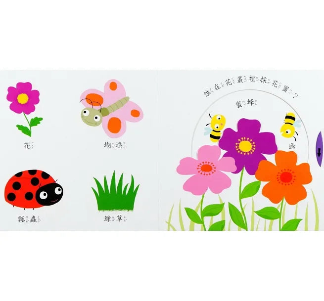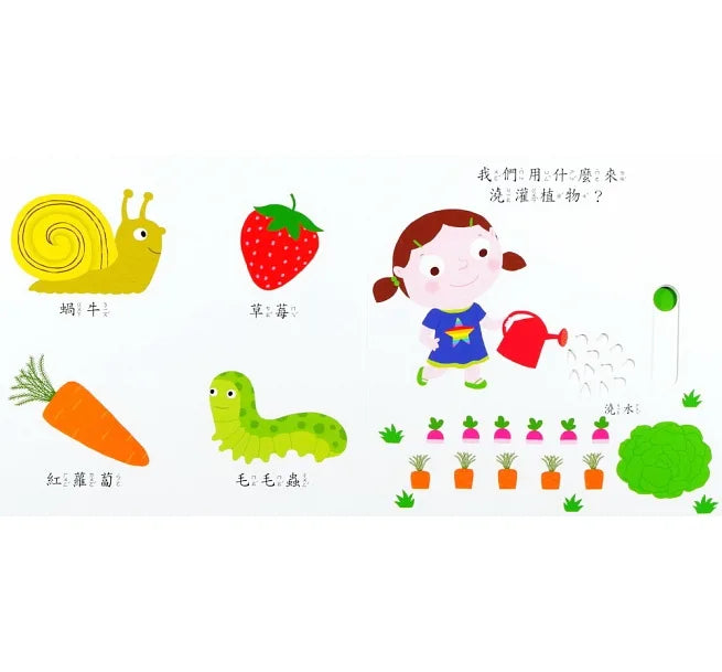 Smart寶寶小手推一推,書中圖畫變啊變,學習說一說我的花園裡的動植物的名稱!