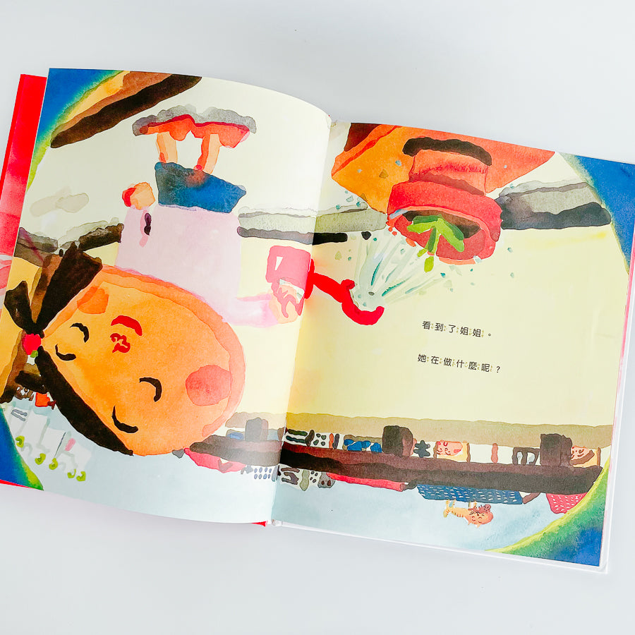 長谷川義史以獨特的視角,呈現在母親腹中頭下腳上的小寶寶,眼睛所看到的「顛倒世界」模樣,並以不同層次、變化的色彩,傳達小寶寶體驗到的各種感官。新穎的發想,不僅有趣,也感人至深。