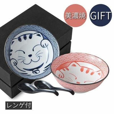 Maneki Neko Donburi Ramen Bowl Gift Set with Soup Spoons – Set of 2