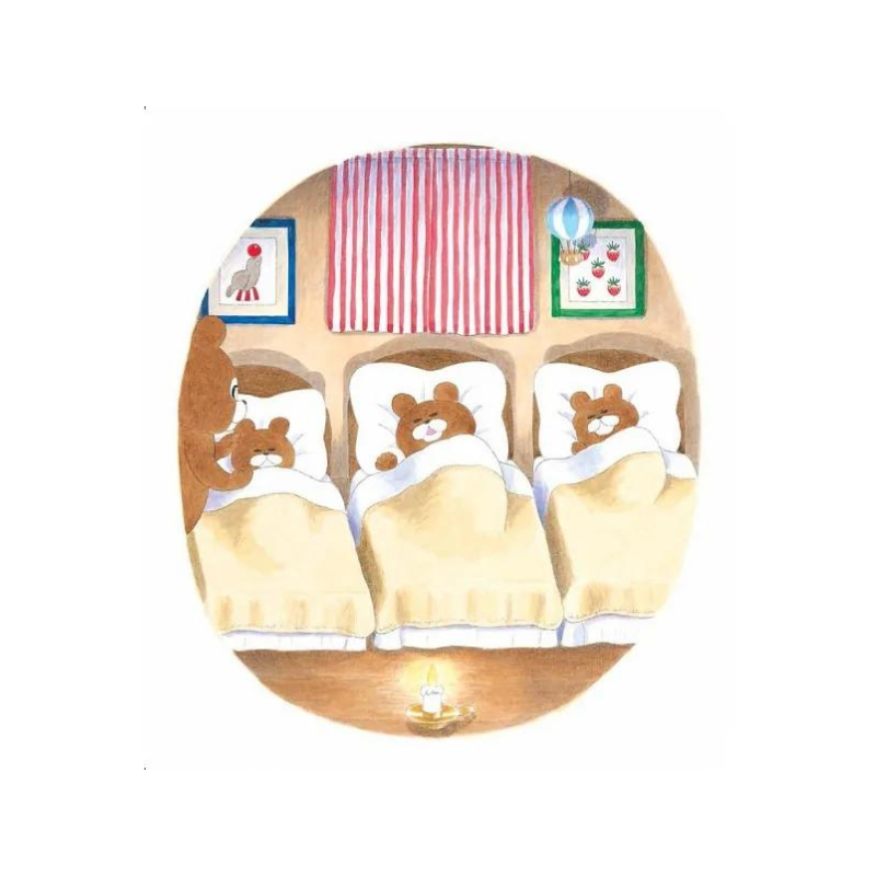 三隻小熊刷好牙、上完廁所、換上睡衣,用暖暖的棉被把身體包起來。