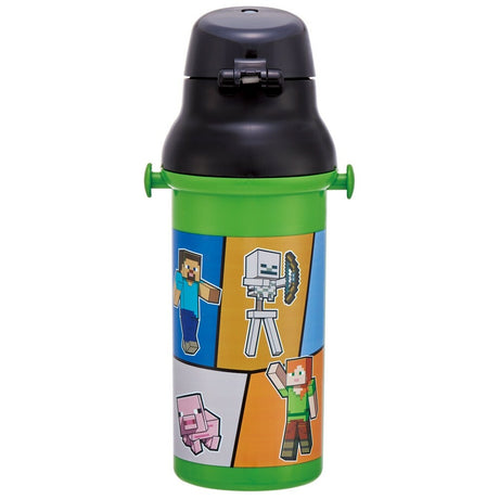 Antibacterial Flask Water Bottle with Carry Strap (480ml) - Minecraft