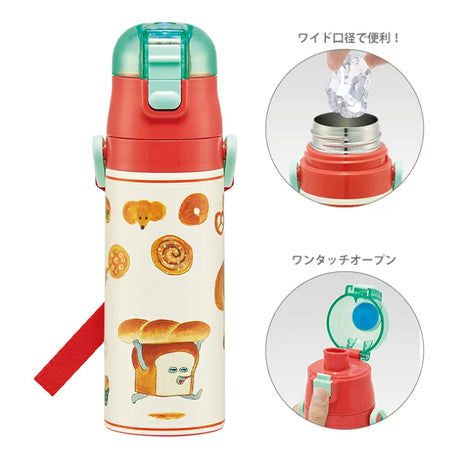 SKATER Ultralight Stainless Steel Flask Water Bottle with Shoulder Strap - Pan Dorobo (580ml)