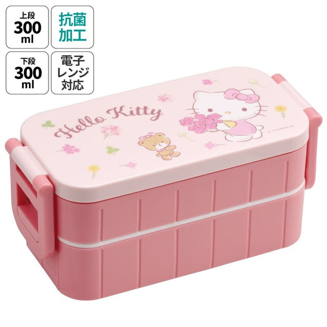 2-Tier Divided Antibacterial Lunch Box (600ml) - Hello Kitty Bloom Flower