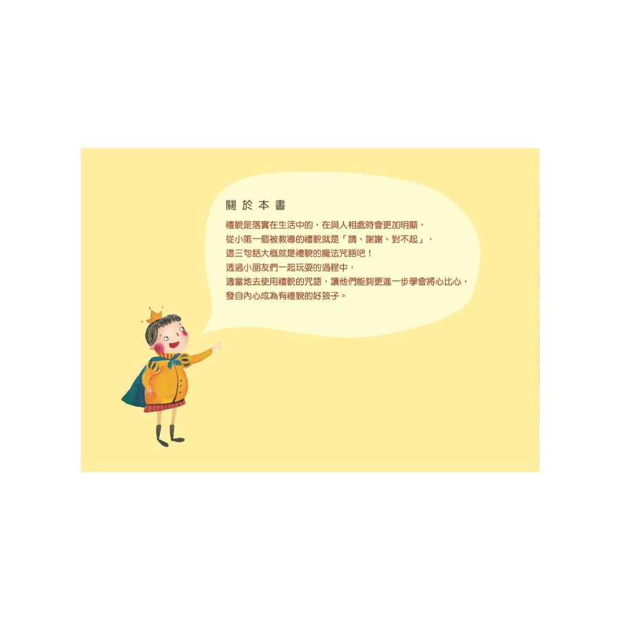 禮貌、尊重及包容是讓你擁有許多好朋友的幾個重要的因素,無論在家中或是外面與其他人相處,都應該隨時要牢記魔法咒語,不然,很有可能我們就會變成寂寞又孤單的怪獸了啊!