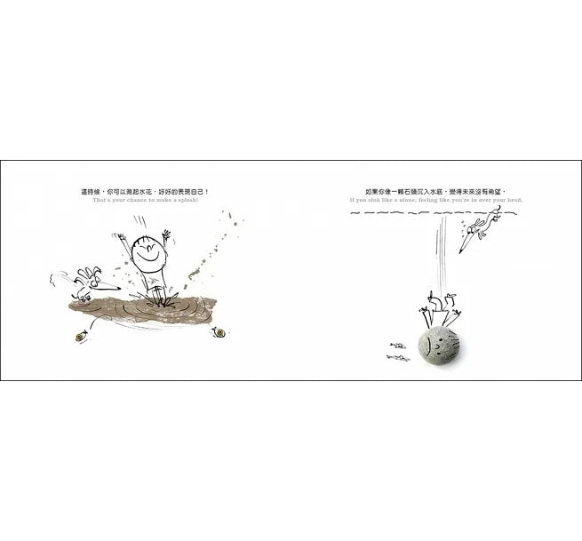 就像我們每個人一樣,小男孩要面臨人生中的許多岔路,有時候,可能會覺得自己像「大池塘裡的小魚」,一點也不重要;或是像「一顆沉入水底的石頭」,覺得未來沒有希望,但在前進的過程中,他們終會發現,每個人生的轉折點,都是抓住月亮、飛向星星的大好機會!