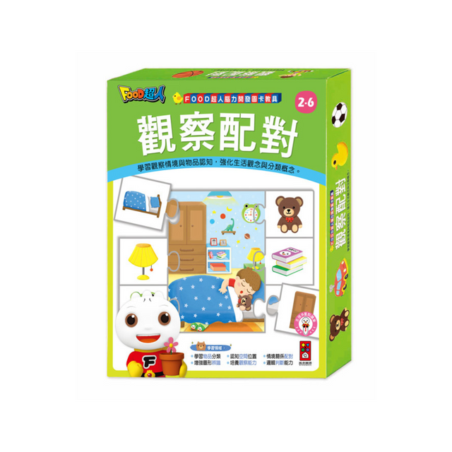 透過觀察情境圖卡中的圖像與細節,並找出相對應的另一張圖卡,培養孩子邏輯判斷能力,同時提升觀察力。