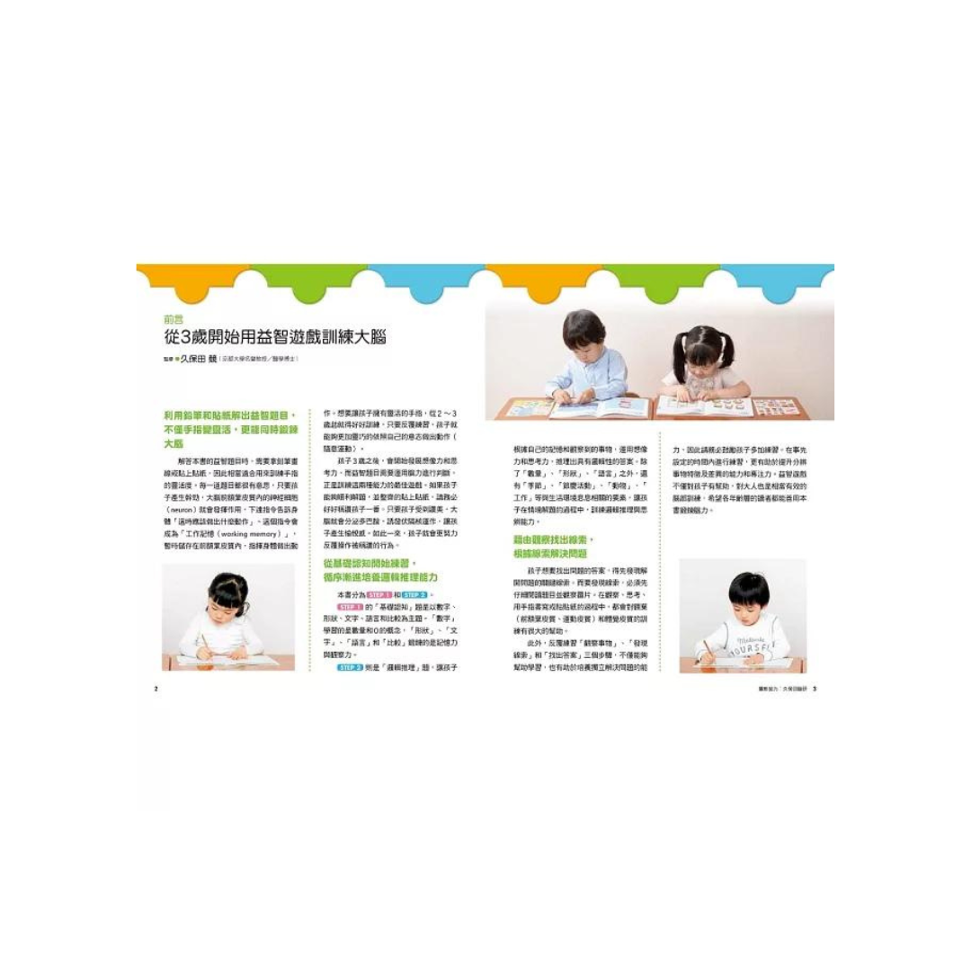 一旦孩子對解開益智題目產生幹勁,大腦前額葉皮質內的神經細胞會對身體下達指令,而該指令則成為「工作記憶」,指揮身體處理語言理解、數學運算等複雜運作,將在日常生活和課業學習中發揮關鍵作用。想擁有聰明邏輯腦嗎?現在就翻開書本,持之以恆的練習,活化腦力!