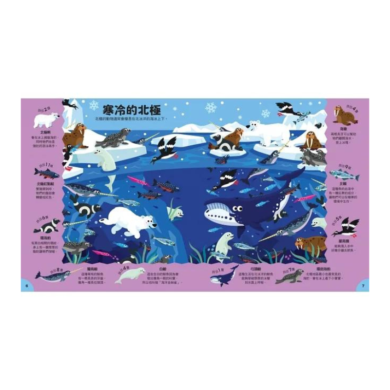 包含:神祕恐龍、海洋生物、野生動物及農場動物等四大主題,每冊超過140種可愛的恐龍、海洋魚類、以及野生動物,讓孩子發揮小偵探敏銳的觀察力,豐富孩子的視覺觀察力與認知學習!一本讓孩子愛不釋手的生態益智遊戲書!