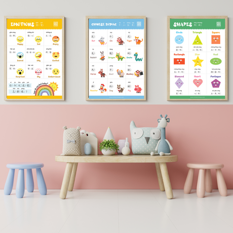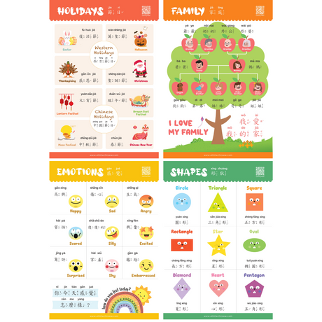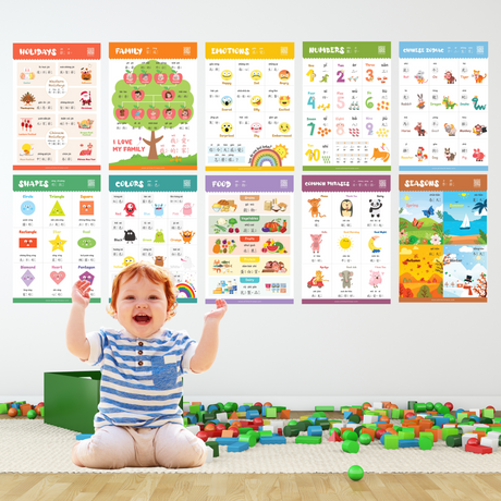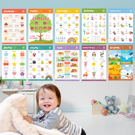 Cute Bilingual Chinese-English Poster Set (Traditional Chinese and Zhuyin) 可愛中英文幼兒學習海報