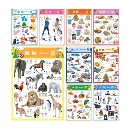 Realistic Bilingual Chinese-English Poster Set (Traditional Chinese and Zhuyin) 實物兒童中英文學習海報組